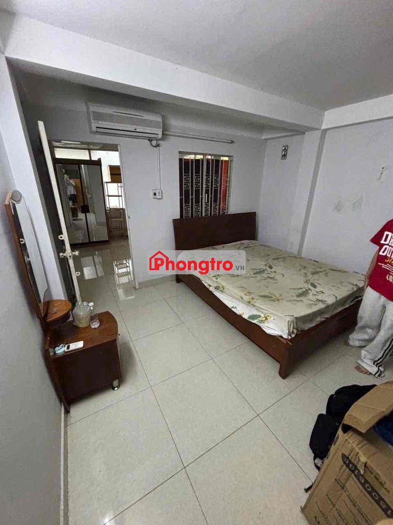 Tầng lầu có máy lạnh, giường tủ, kệ bếp, tủ quần áo... Có ban công, cửa sổ thoáng mát, wc ngay sát bên.