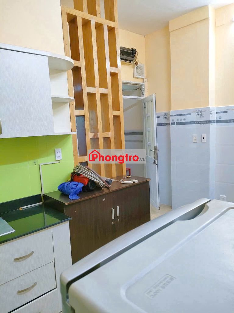 Dạng phòng:, wc, bếp,. Full nội thất (máy lạnh, tủ lạnh, tắm nước nóng, giường nệm, tủ quần áo, kệ, bếp, máy giặt - phơi riêng)