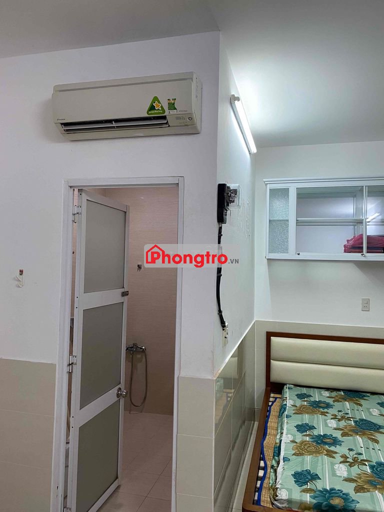 Có giường, tủ, máy lạnh, nhà vệ sinh riêng. Sân thượng chung rộng rãi.