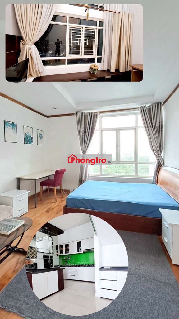 + Phòng sàn gỗ, Máy lạnh, tủ lạnh, Phòng tắm, máy nước nóng.
