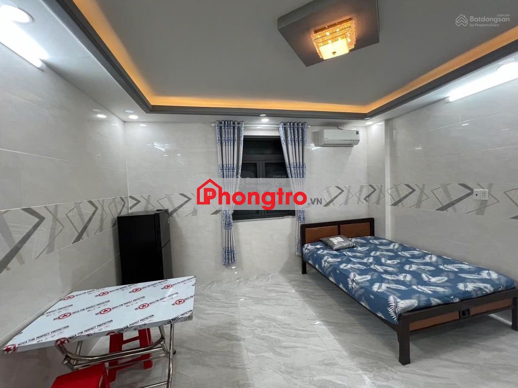 Nội thất đầy đủ: Giường, nệm, máy lạnh, tủ lạnh, tủ quần áo, kệ bếp nấu ăn, cửa sổ đón ánh sáng. WC riêng trong phòng.
