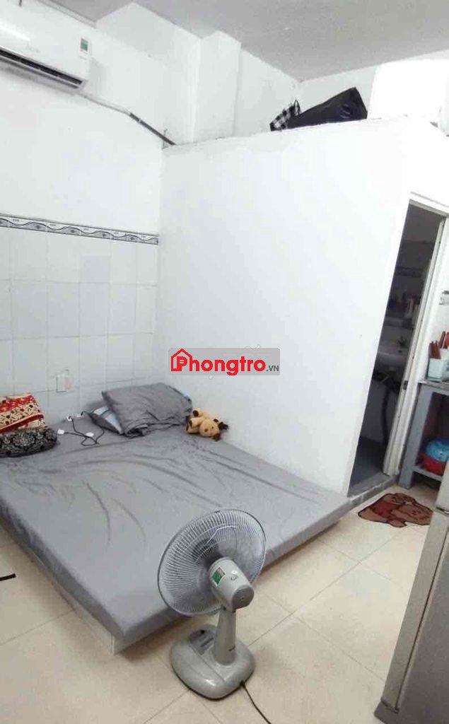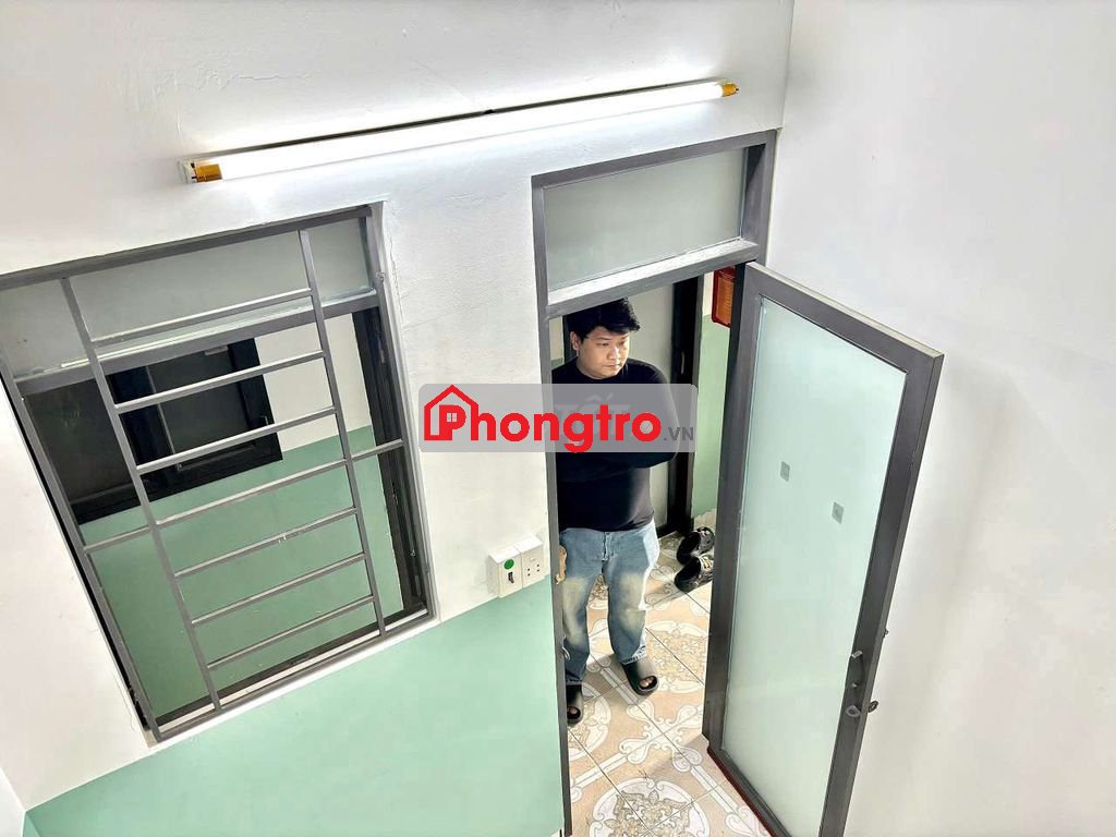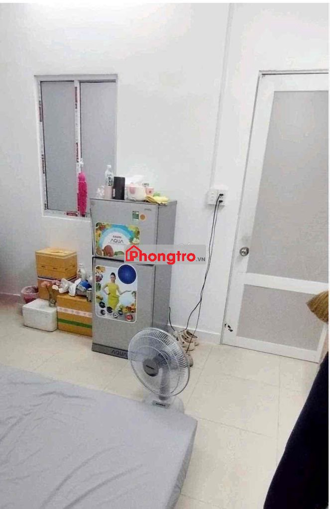Phòng mới 18m2 full đồ, máy lạnh, tủ lạnh, giường kệ, bếp, wc, cửa sổ hành lang, quạt hút, tầng trệt.