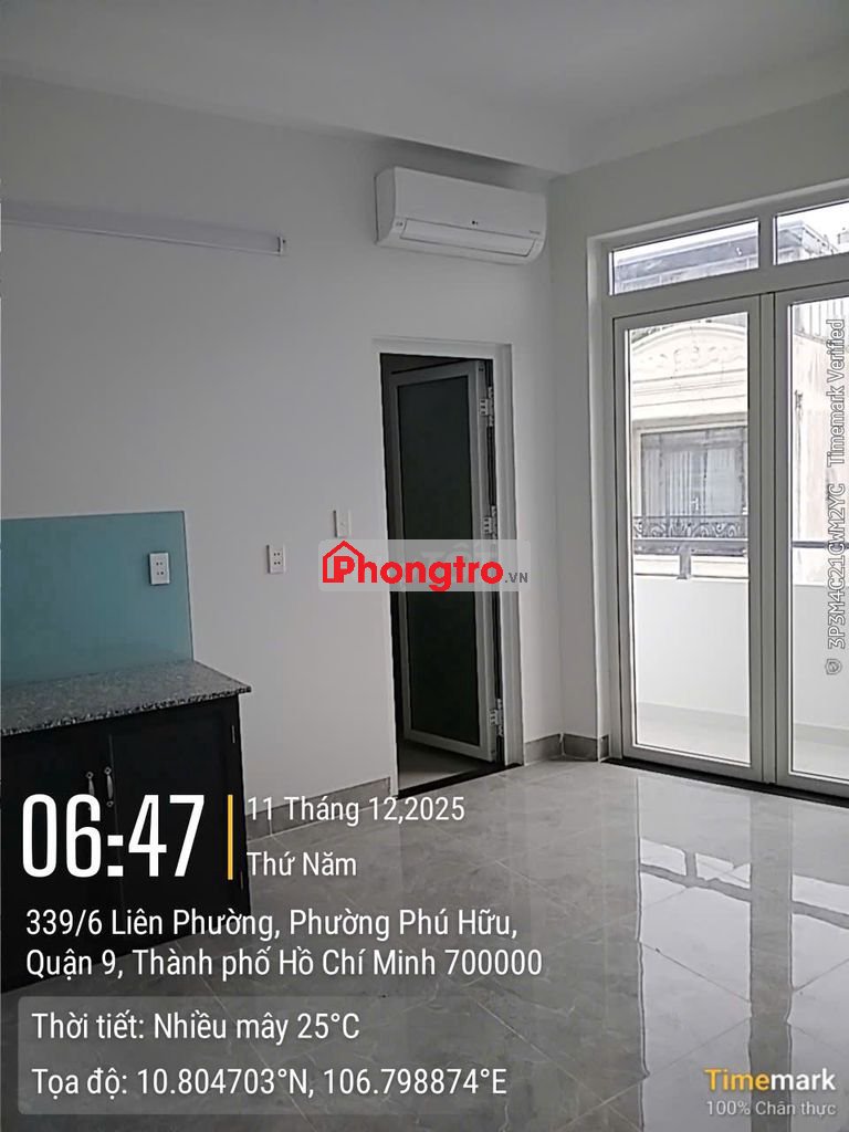 Cho thuê phòng trọ mới full đồ máy lạnh, máy giặt, tủ bếp, điên nước riêng, để xe máy wifi miễn phí, ban công view đẹp thoáng, nước nóng NLMT, an ninh tốt sạch sẽ mát mẻ. DT 20m2 giá 3,5 triệu/ tháng cọc 1 tháng ở được 3 người tại 339 đường Liên Phường, Phú Hữu, Thủ Đức, TP HCM.