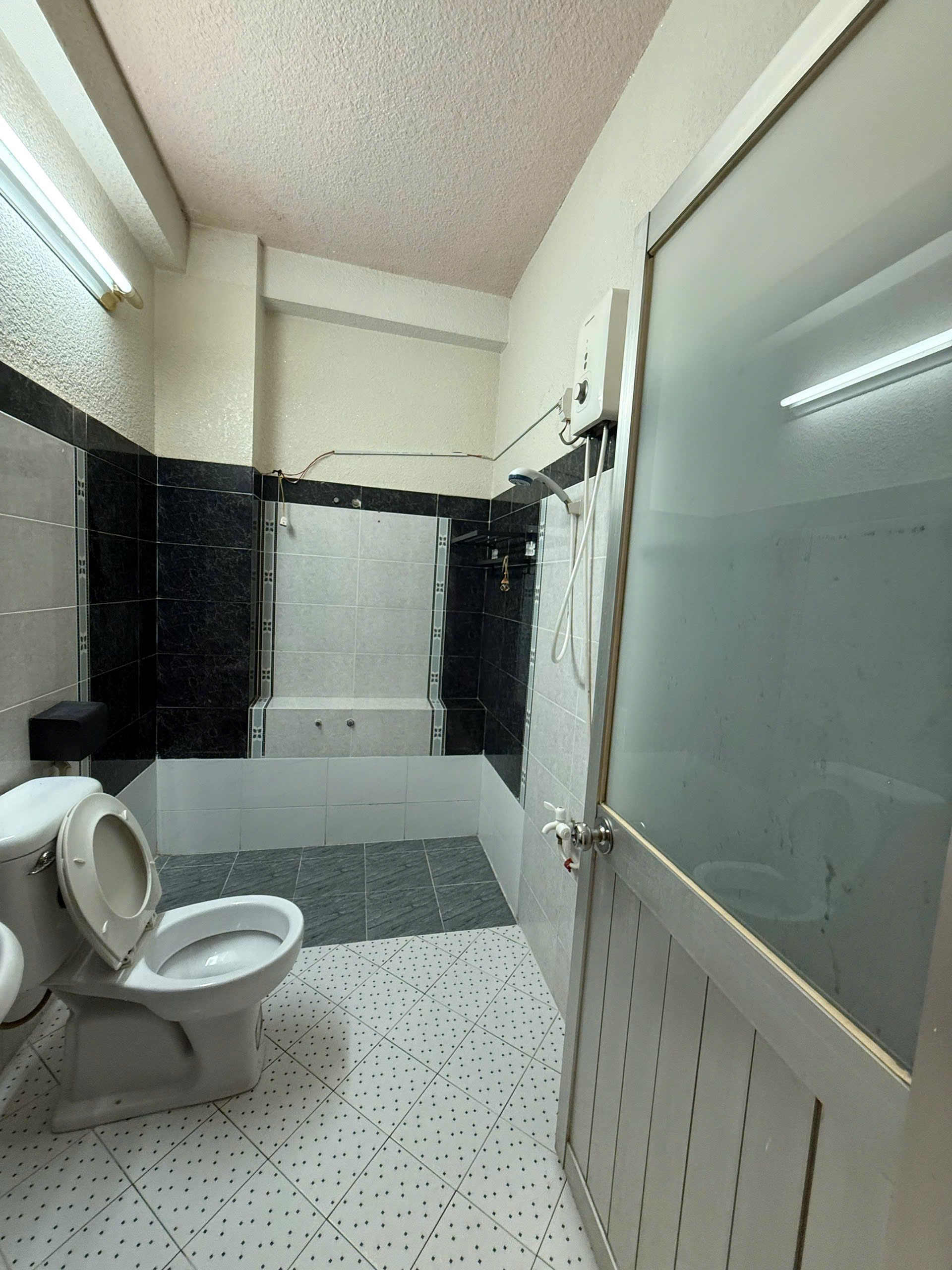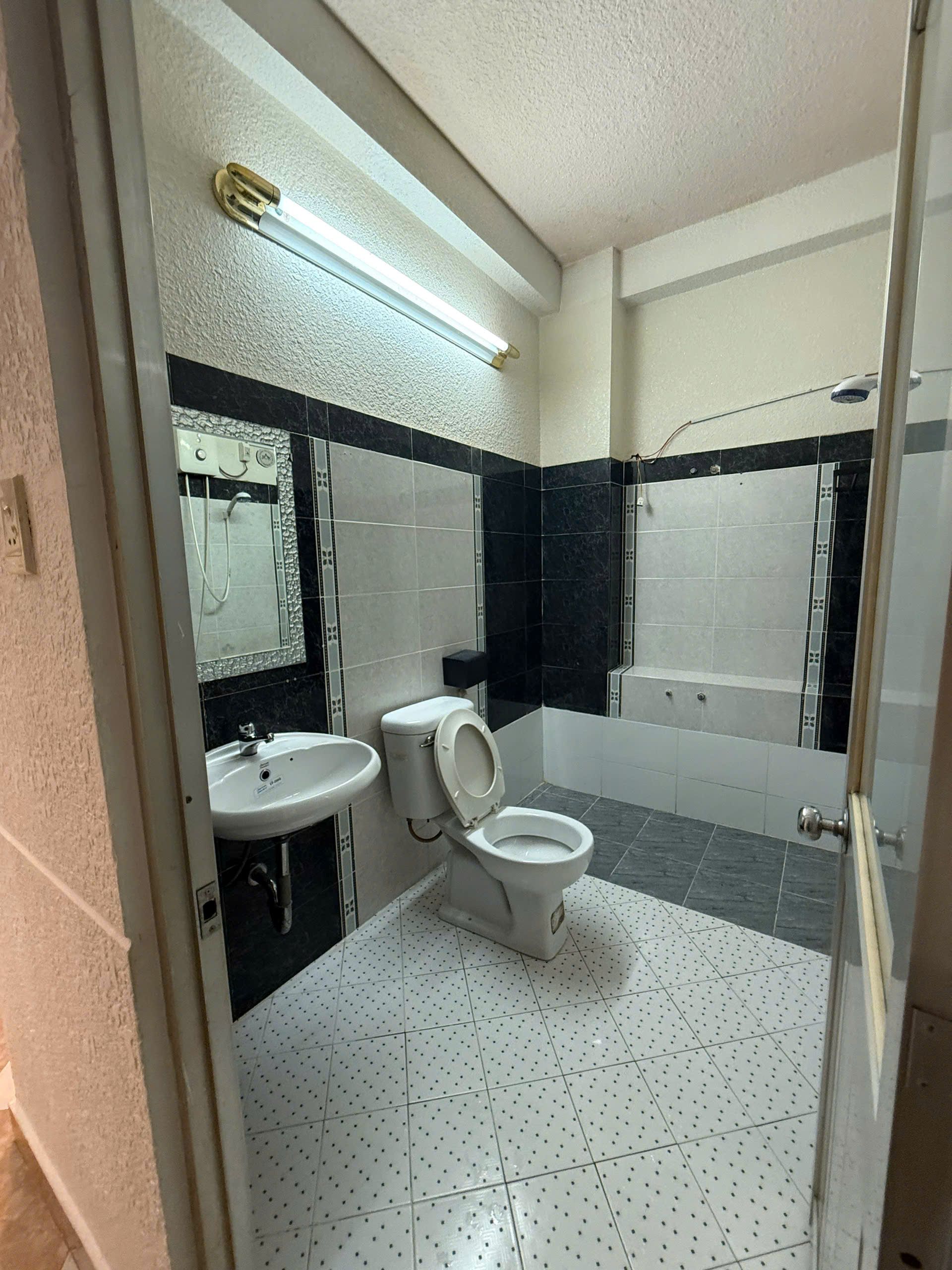 Làm sân nhậu được 8-10 người thoải mái, nhà wc to bự