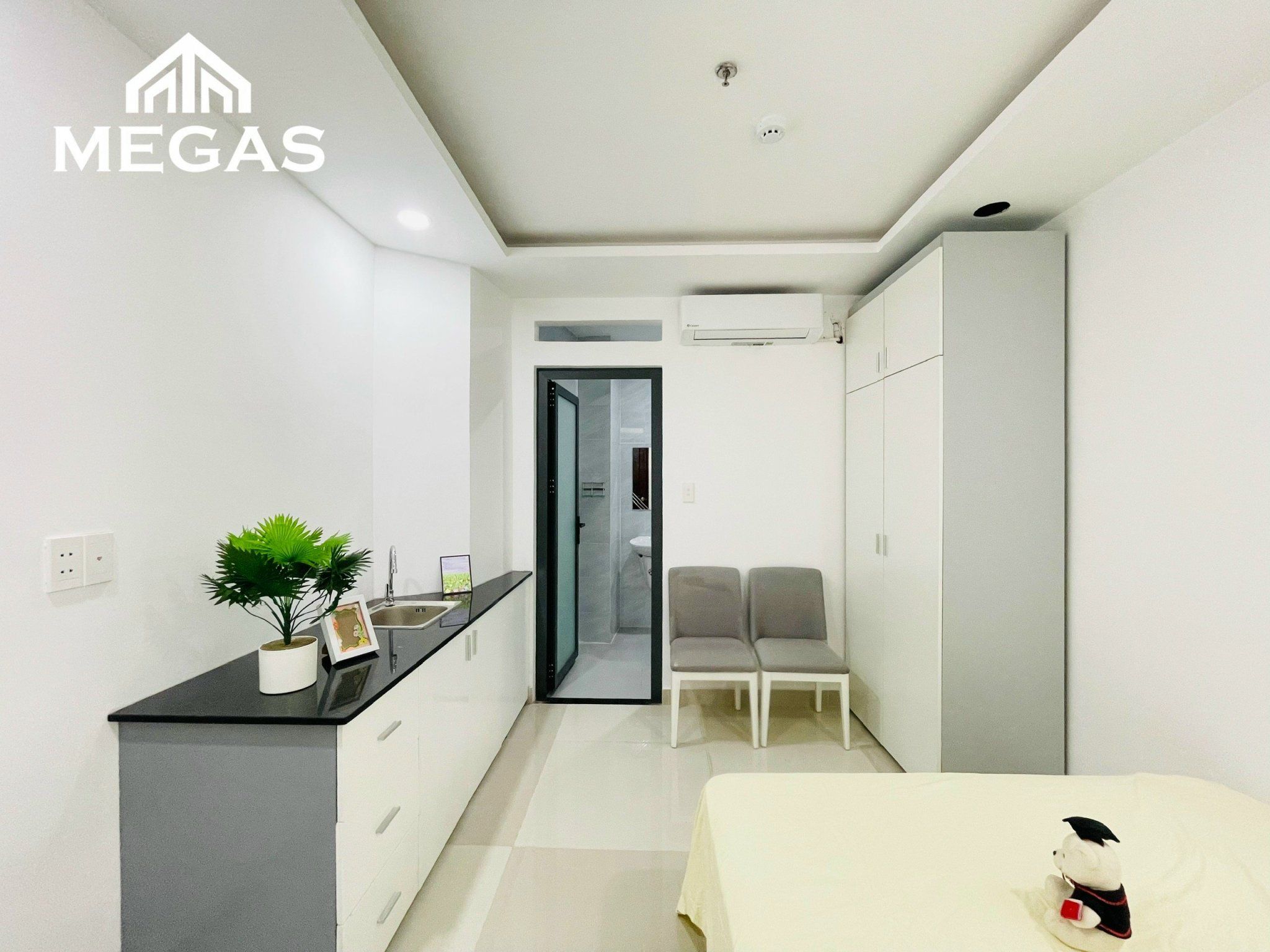 Căn hộ trang bị đầy đủ nội thất: Máy lạnh, tủ lạnh, kệ tủ bếp, tủ quần áo, bàn ghế,...