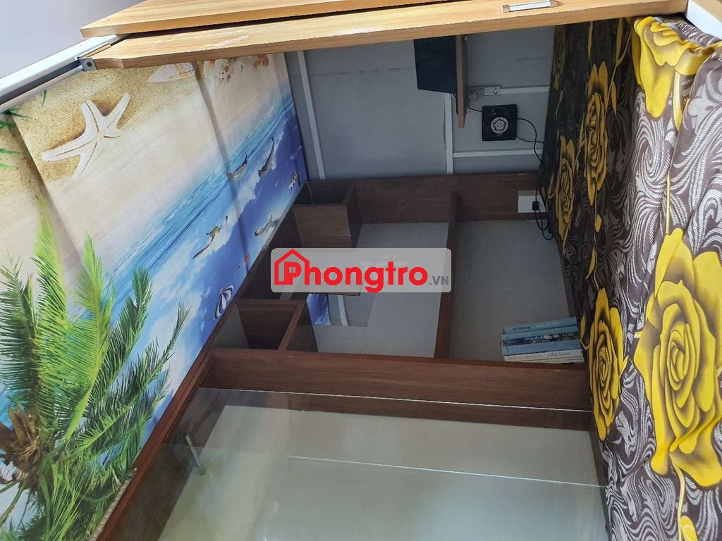 ĐỦ NỘI THẤT: Tủ treo quần áo, kệ sách, bàn học, gương trang điểm, đèn, quạt, ổ cắm điện, hộc để giày và valy bên trong. Có sẵn nệm, drap, mền, gối và 5 cái mắc áo miễn phí.