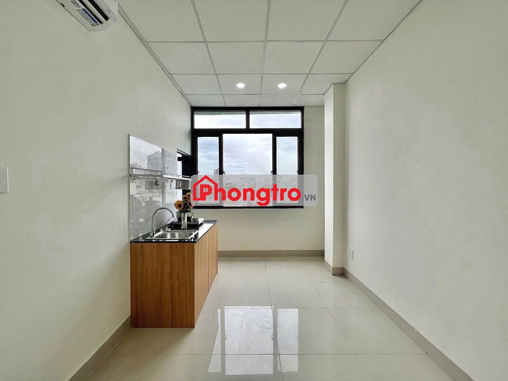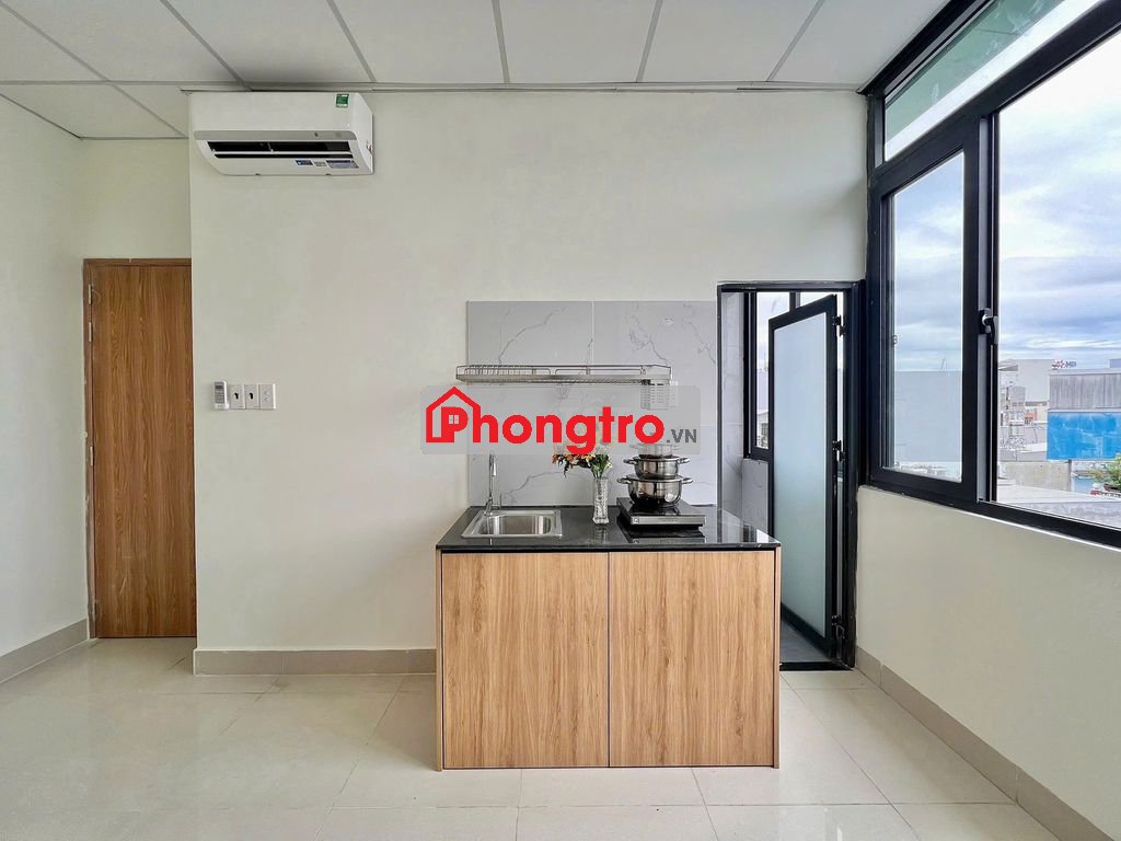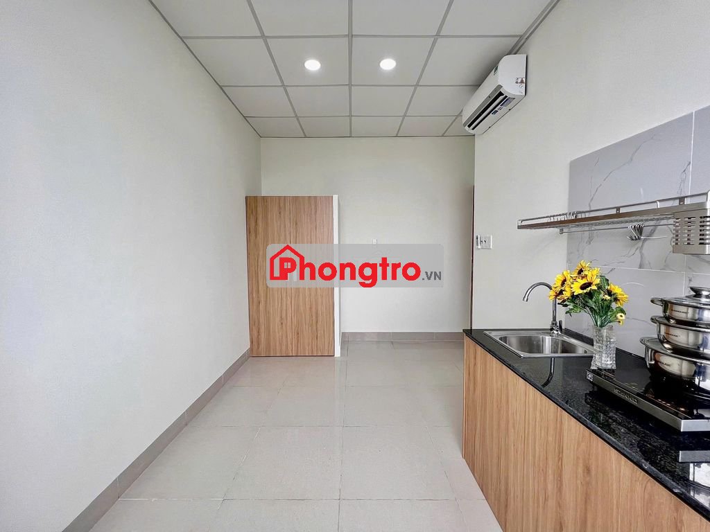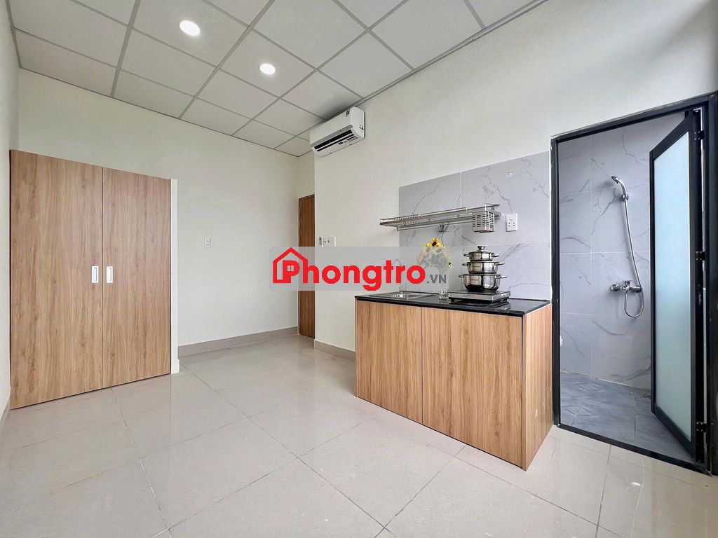 Phòng trang bị nội thất đầy đủ: tủ áo, bếp, điều hòa, máy nóng lạnh new