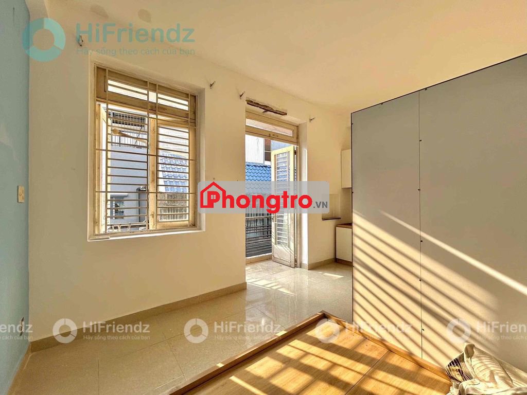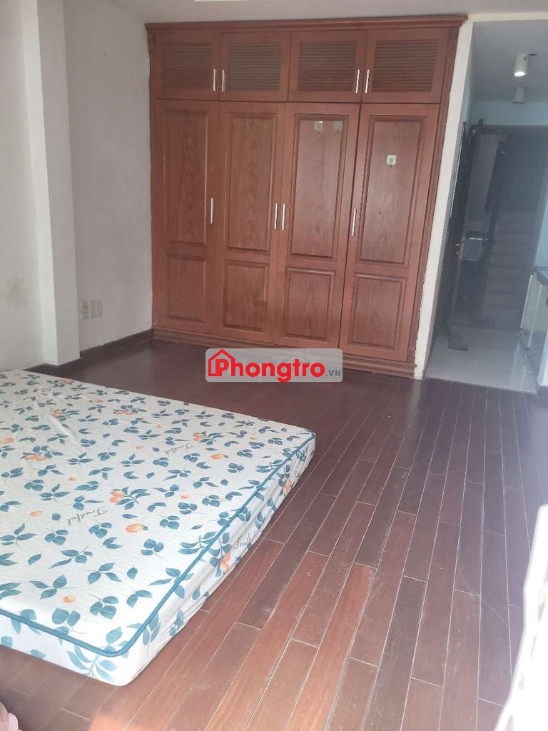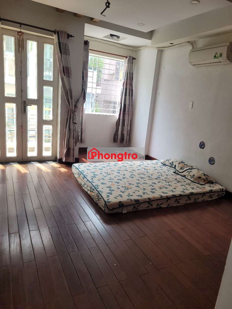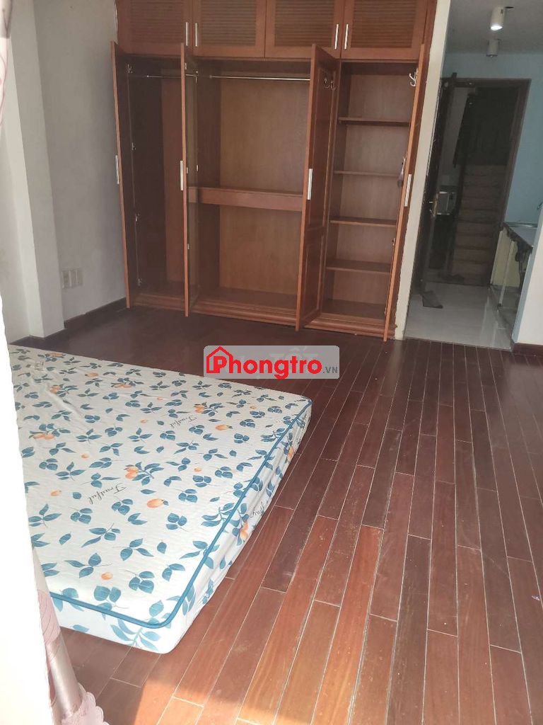 Phòng có máy lạnh, sàn gỗ tự nhiên, cửa sổ lớn, ban công lớn thoáng mát. Có tủ quần áo gỗ âm tường lớn. Có toilet rộng thoáng, có máy nước nóng,